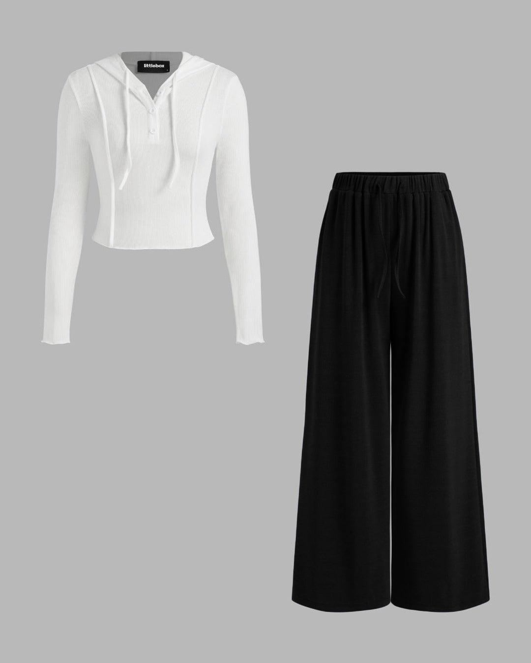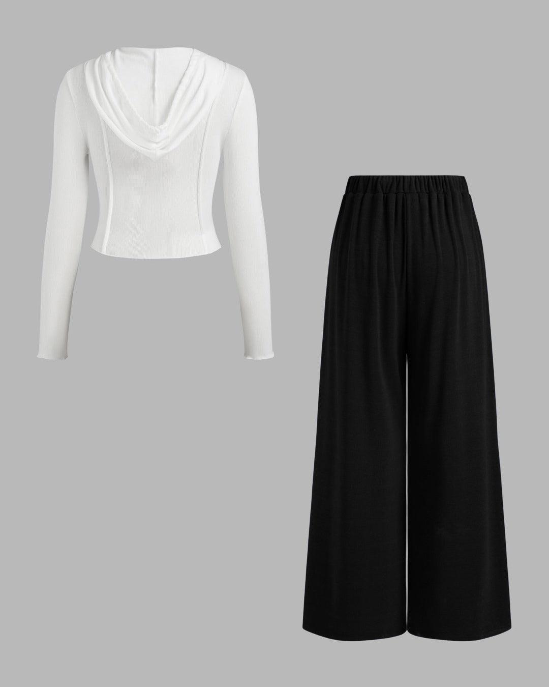 Elevate your style game with our Hooded Solid Top & Mid Rise Pocket Wide Leg Trousers Set. Crafted with high-quality fabrics, this set offers a comfortable fit while maintaining a chic look. Perfect for any occasion, the hooded top and pocket wide leg trousers add versatility to your wardrobe.