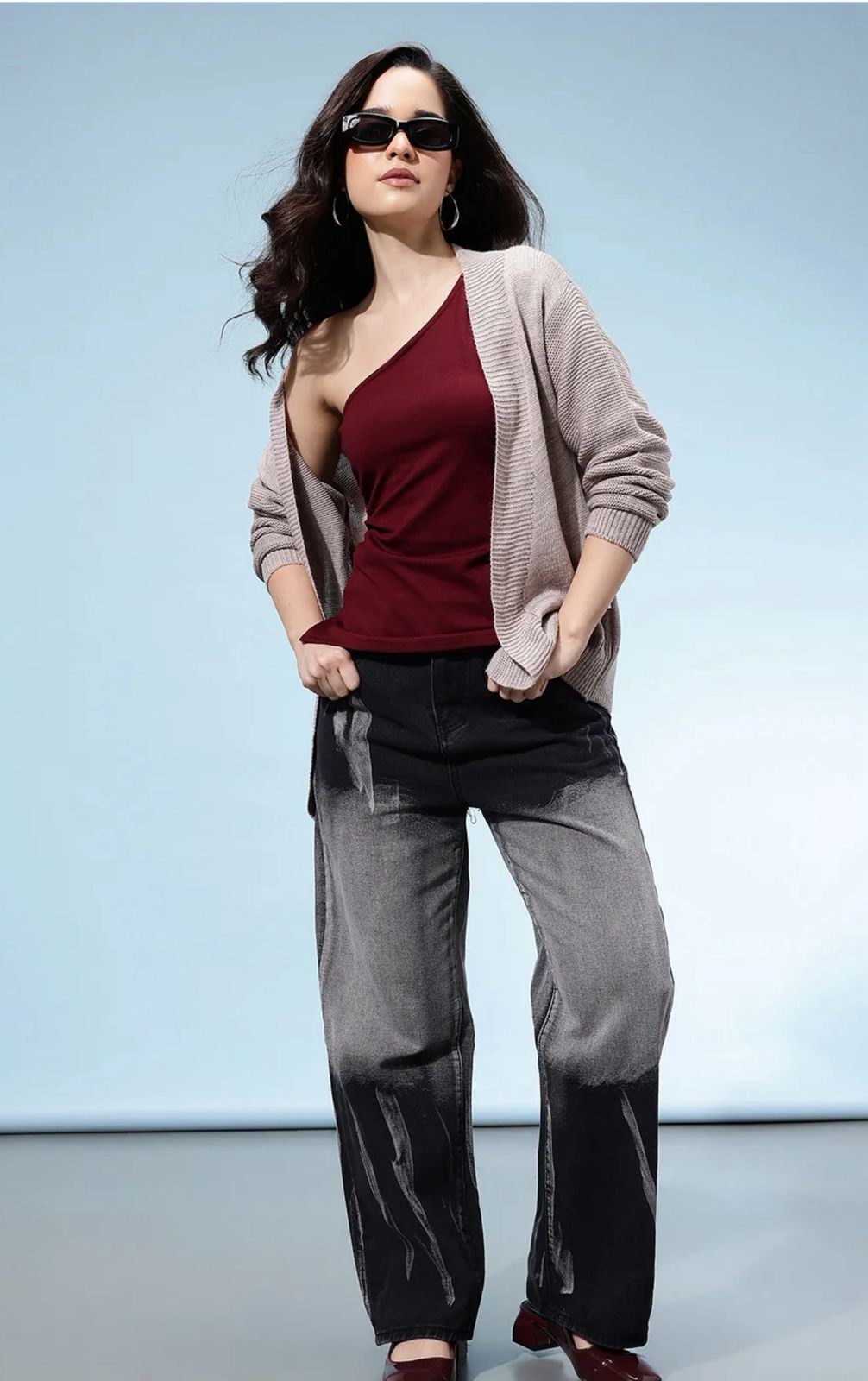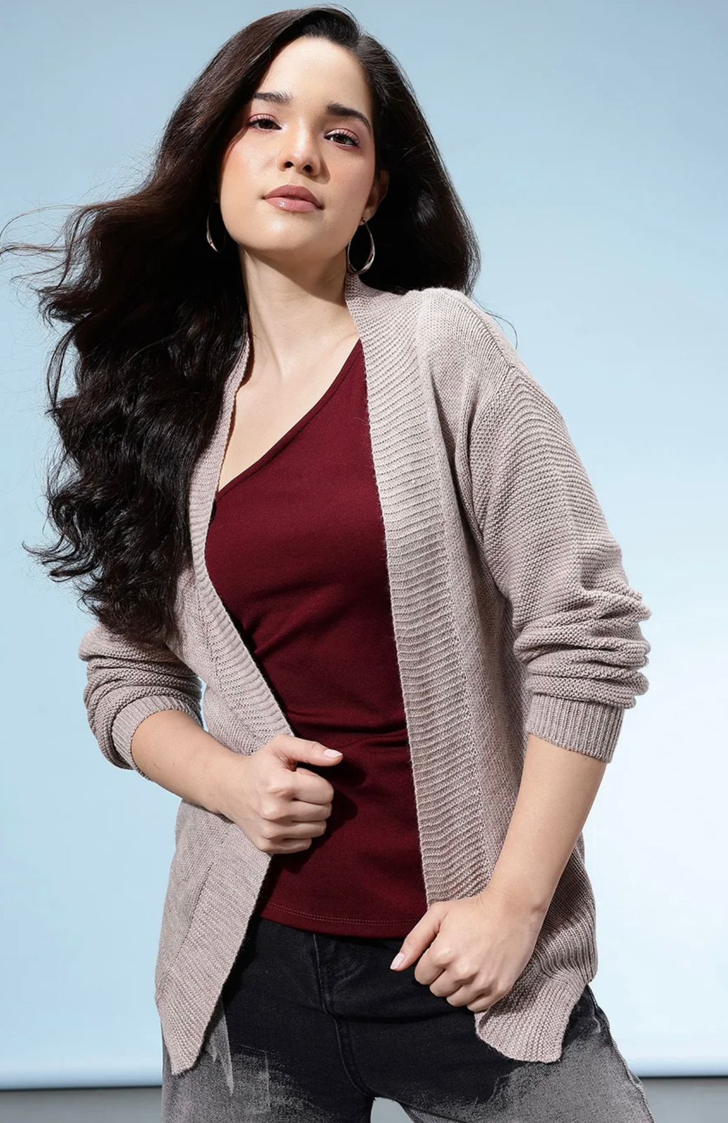 This Self Design Conversational Front-Open Oversized Sweater combines a unique self-design pattern with an oversized fit and front-open style to create a versatile and comfortable addition to any wardrobe. Made with high-quality materials, this sweater is perfect for casual or dressed up occasions.