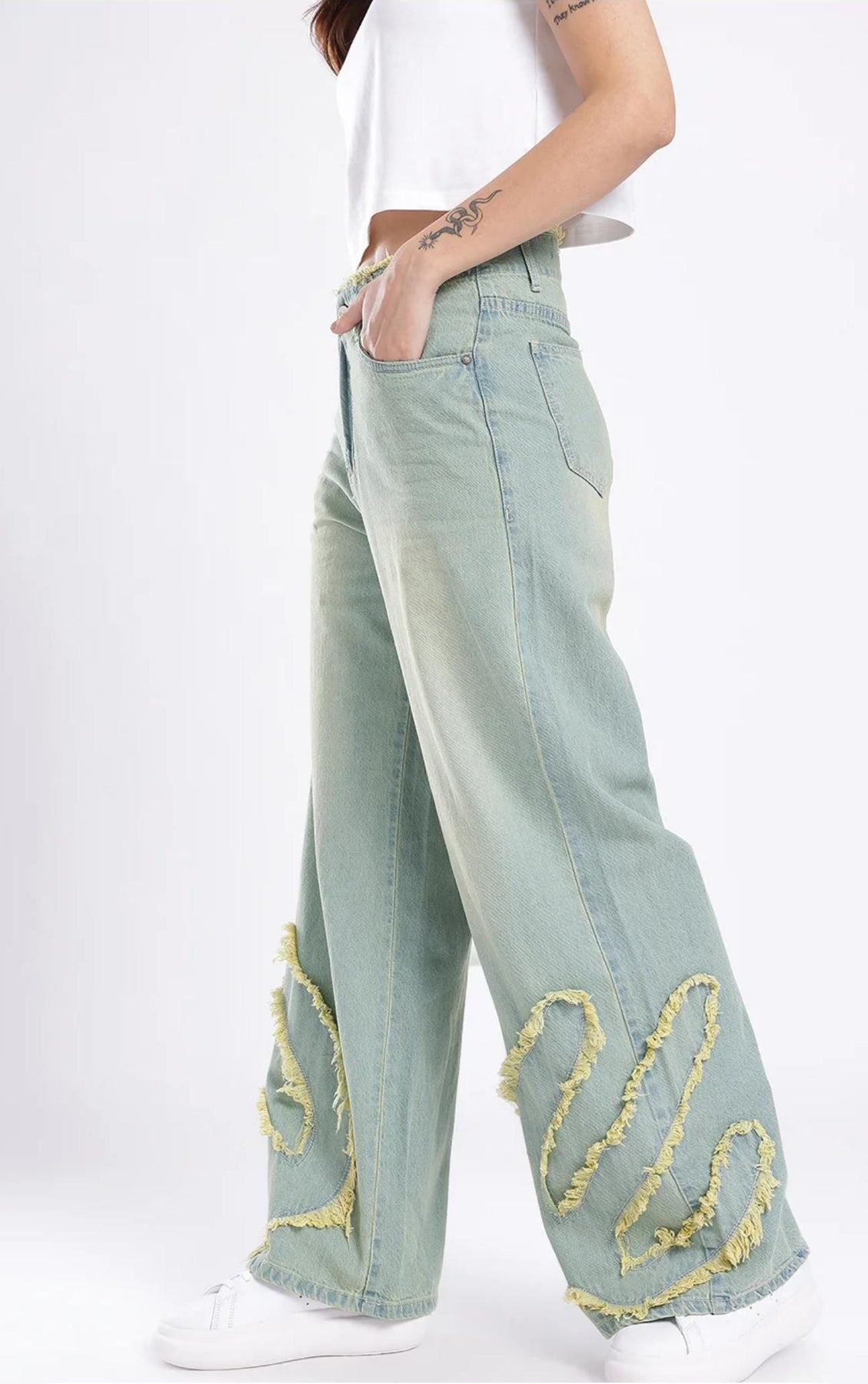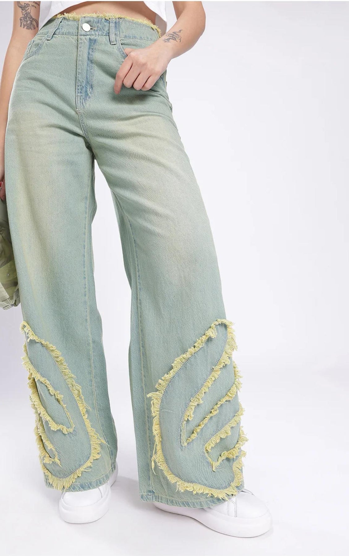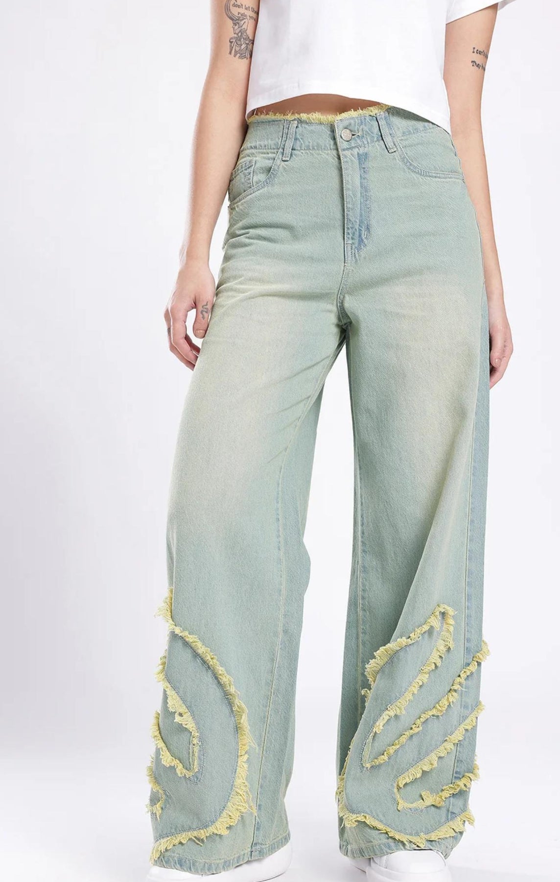 These Women Frayed Detail Wide Leg High-Rise Heavy Fade Jeans offer a stylish and comfortable fit for any occasion. The frayed detailing adds a touch of edge while the wide leg and high-rise design provide a flattering silhouette. Made with heavy fade denim, these jeans are both durable and on trend.